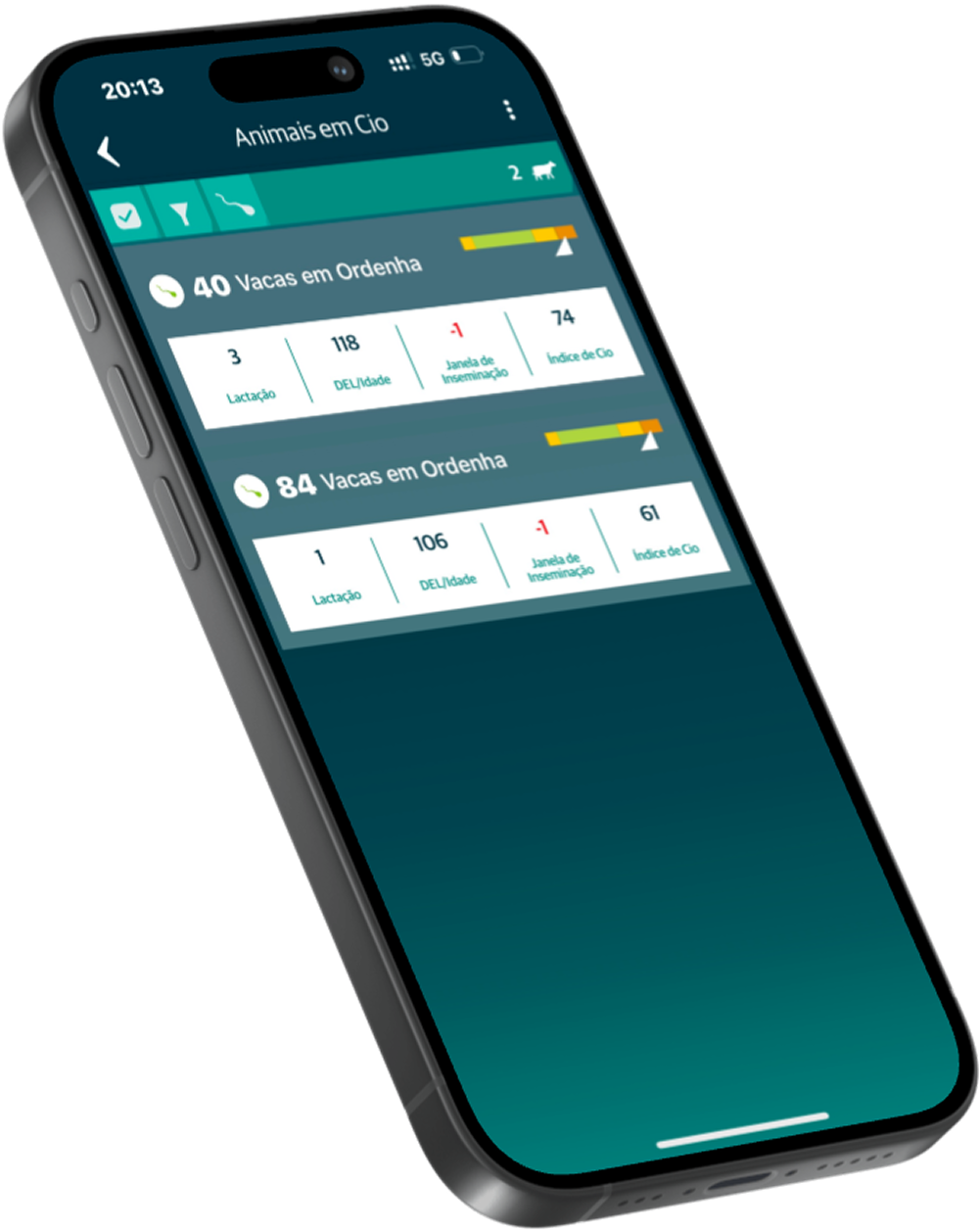 Os Insights acionáveis em tempo real eliminam suposições e inconsistências, reduzem a necessidade de mão-de-obra especializada e economizam tempo valioso. Com a deteção de cio e orientação para inseminação, pode reduzir os intervalos entre partos, melhorar a produtividade animal e avançar a genética do rebanho.